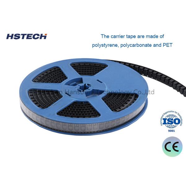 The embossed carrier tape are made of polystyrene, polycarbonate and PET. Carrier tapes with varying conductive and anti-static qualities to suit different components applications.The Carrier tape has pockets that are shaped to match the contours of the component to be carried. The width of carrier tape is between 8 and 104 mm, we also can custom for customers based on their demand.